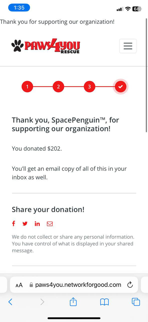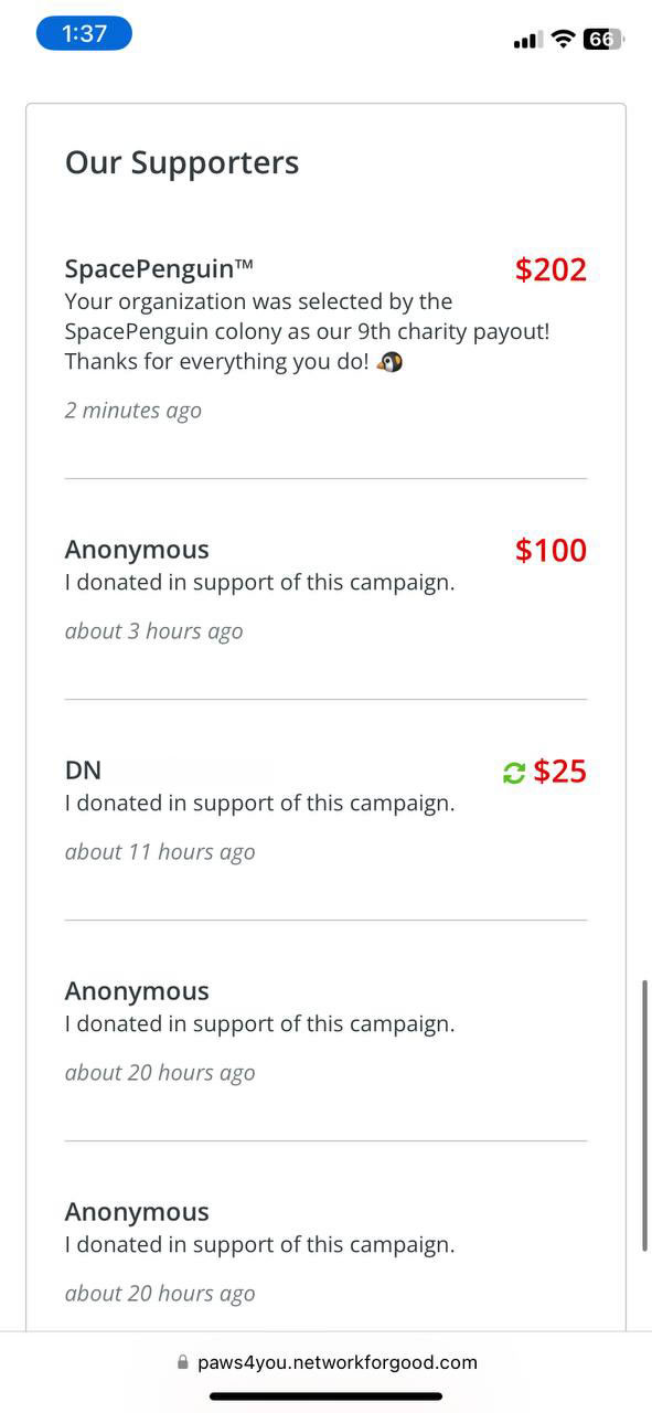 ✓ $202 USD donated to PAWS4you Rescue on 2025 Dec 31st.